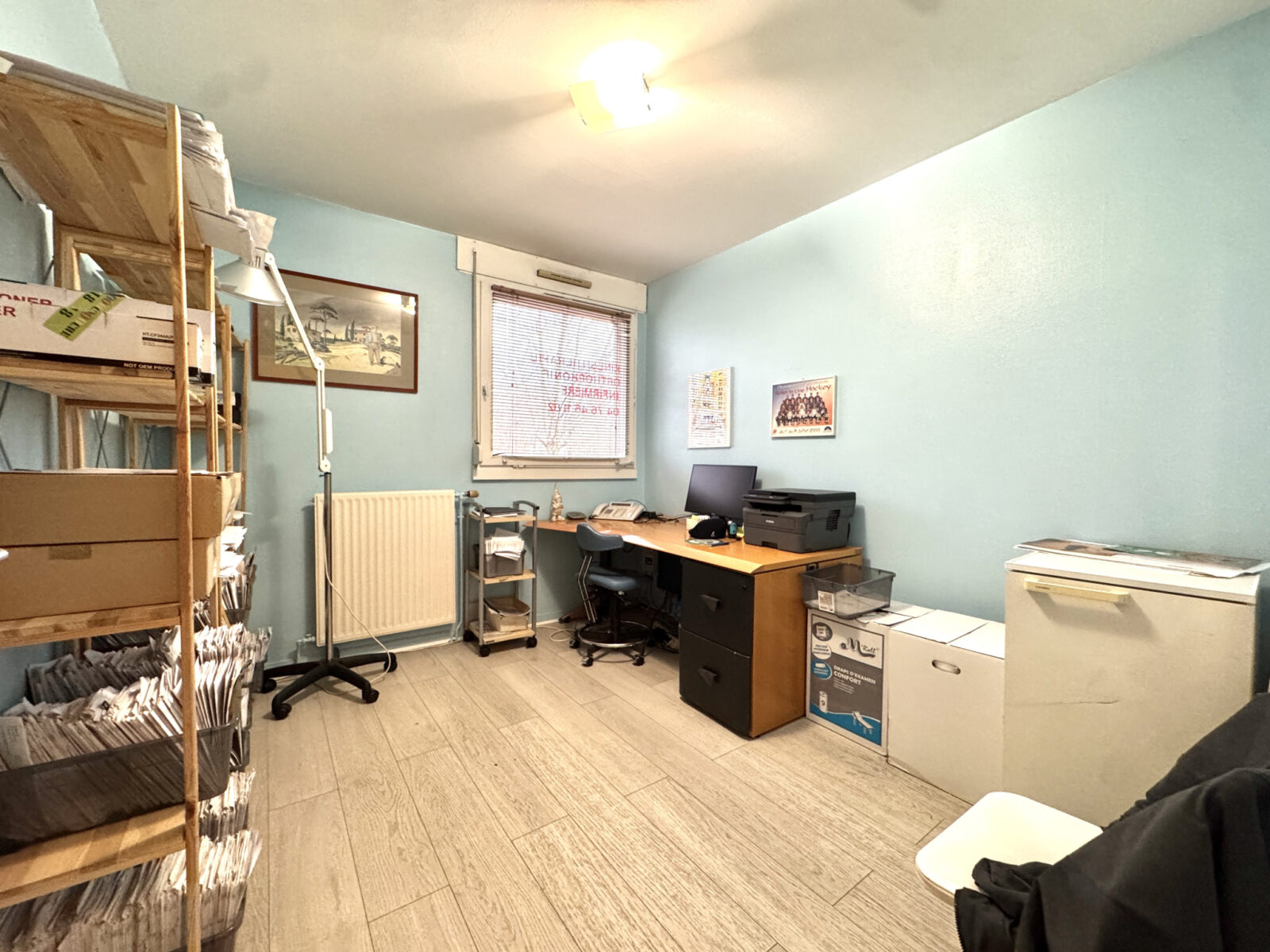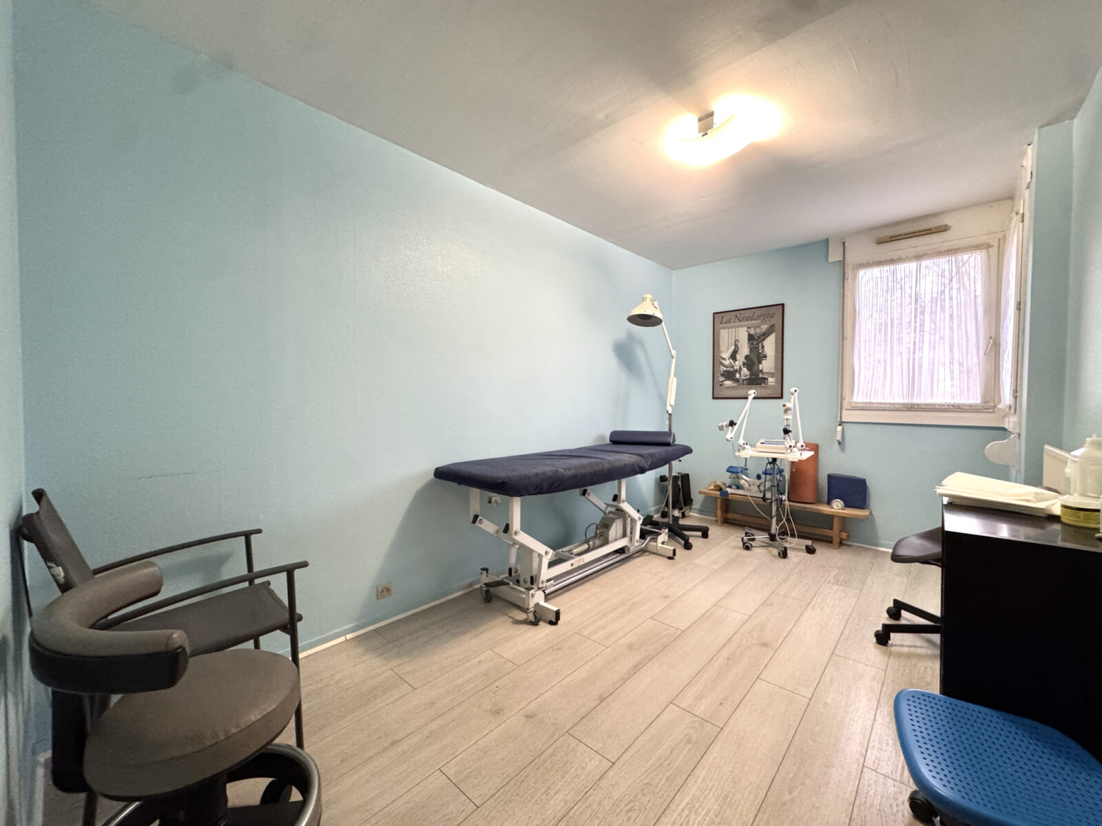 Actuellement aménagé en cabinet médical (kinésithérapie), il offre de nombreuses possibilités d’usage.
