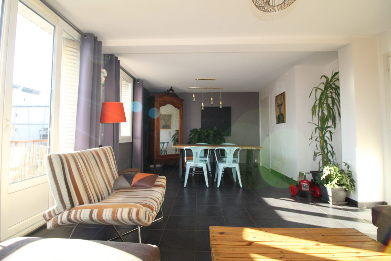 Idéalement placé à deux pas de tous les commerces, des trams A et C, de la rocade et proche de l’hyper centre de grenoble, véritable coup de coeur pour cet appartement 3 Pièces + Cuisine de 58,73 m2 transformé en 2 pièces. Traversant nord/sud situé au 3 ème étage sans ascenseur d’une copropriété bien tenue, il dispose d’un séjour double de 26 m2 avec accès à un balconnet avec vue imprenable sur la Chaine de Belledonne, d’une cuisine indépendante équipée/meublée avec accès loggia, d’une chambre spacieuse de 13 m2 avec un placard intégré (possibilité de créer une 2 ème chambre dans le séjour), d’une salle d’eau ainsi que d’un wc. L’appartement est très lumineux grâce à son exposition plein sud. Chauffage collectif au gaz au sol, double vitrage pvc, électricité aux normes, nombreux rangements. Possibilité de reprendre un bail pour la location d’un garage au pied de l’immeuble pour seulement 71 €uros/mois. Vendu avec une cave au sous-sol. A VISITER RAPIDEMENT !
