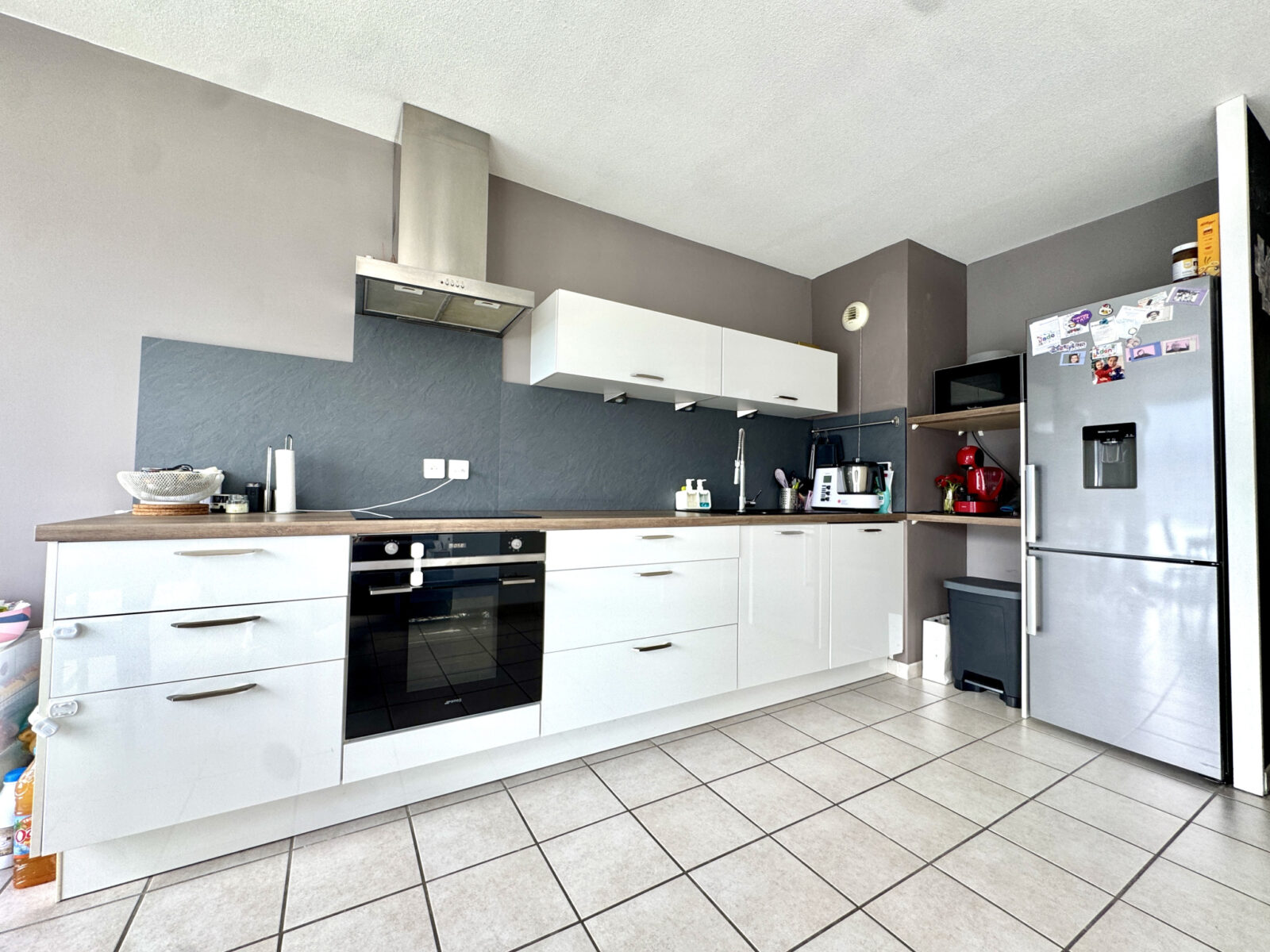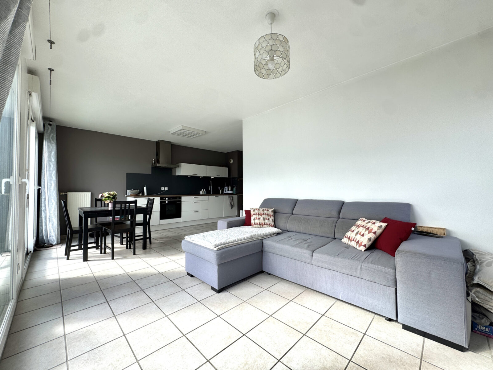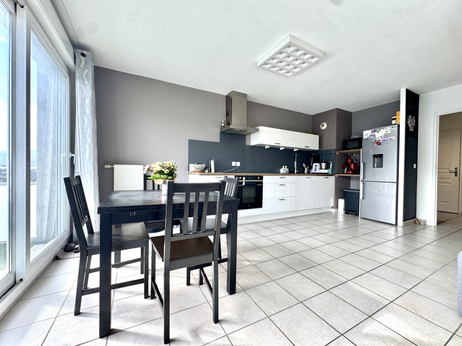 L’appartement se compose d’une spacieuse pièce de vie lumineuse ouverte sur une cuisine entièrement équipée et aménagée, avec double accès à une agréable terrasse de 13 m2.
