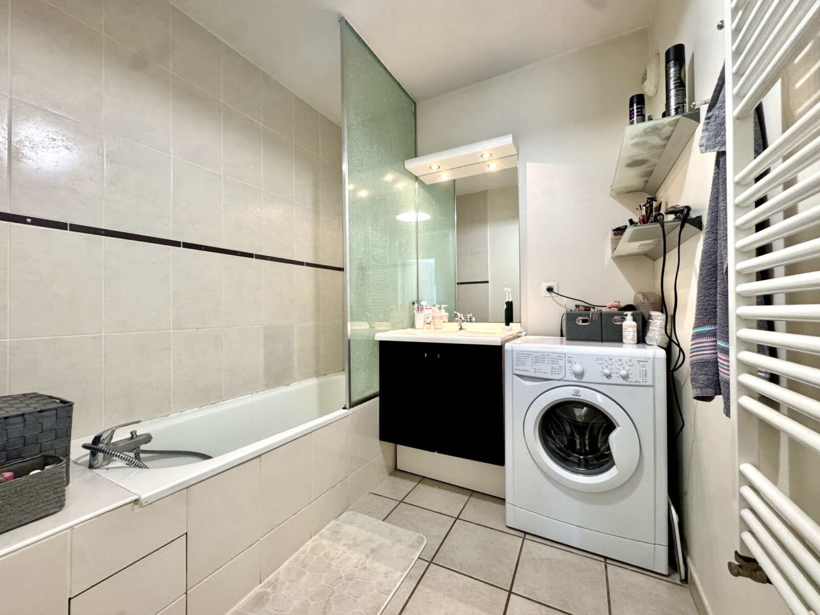 Le chauffage collectif, ainsi que l’eau chaude et l’eau froide, sont inclus dans les charges de copropriété, d’environ 200 € par mois.