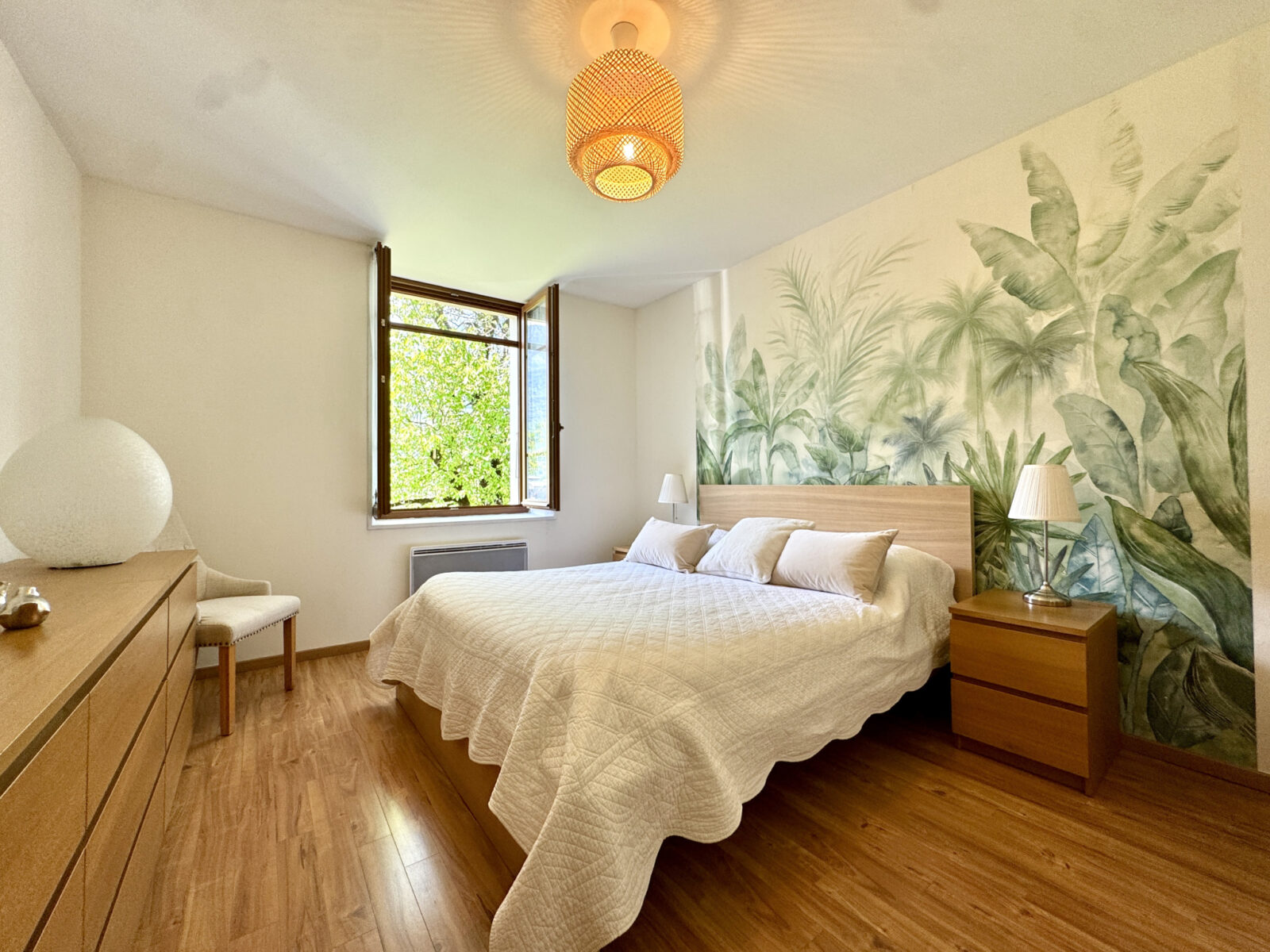 L’espace nuit comprend 2 chambres avec placards intégrés, une salle d’eau équipée d’une douche et d’un meuble vasque, ainsi qu’un WC indépendant.