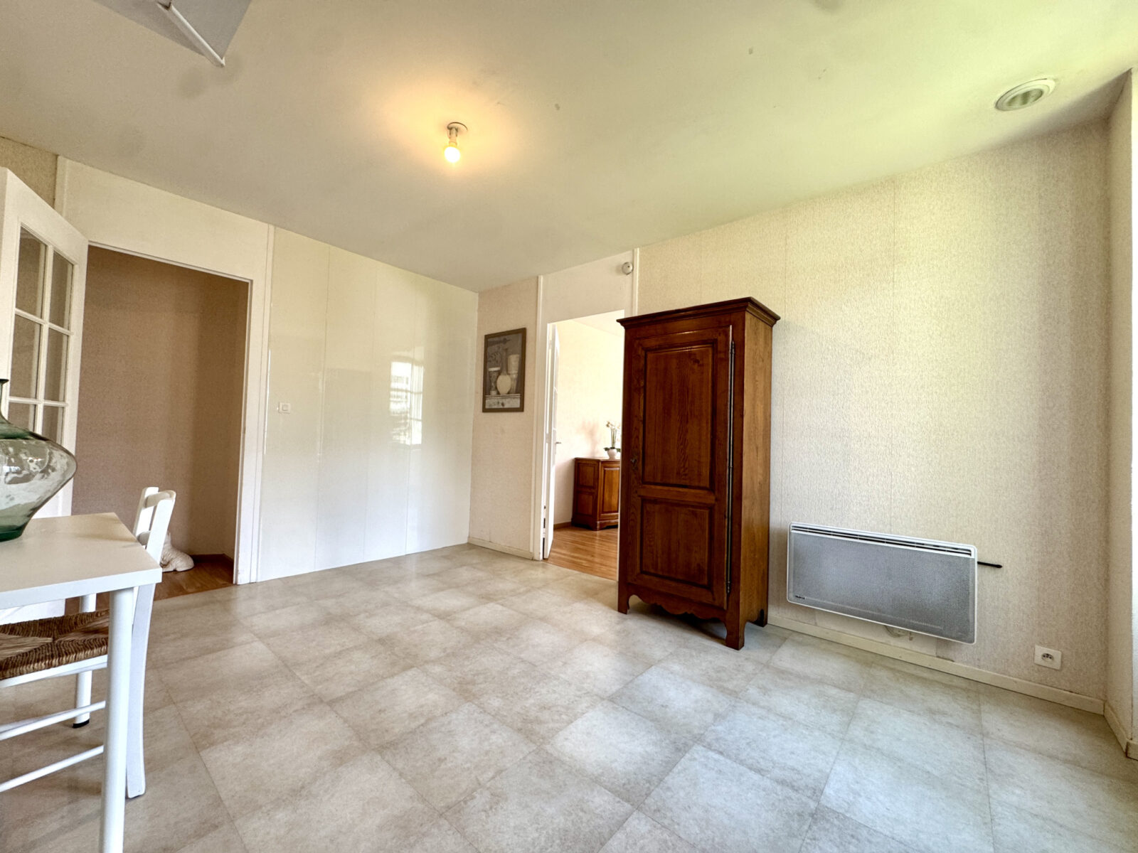 Quelques travaux de personnalisation sont à prévoir, notamment l’ouverture de la cloison entre la cuisine et le séjour, ainsi que l’installation d’une cuisine équipée selon vos envies (arrivées d’eau déjà en place).