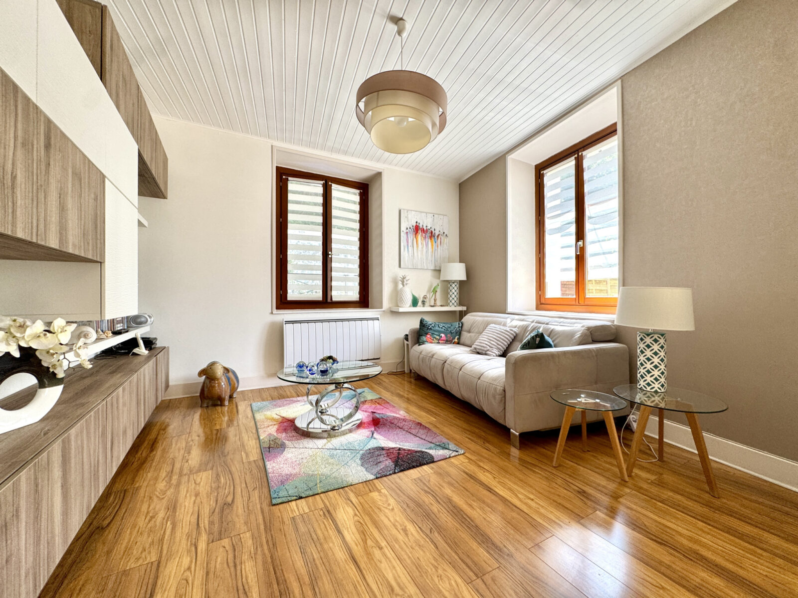 Côté nuit, vous trouverez 2 chambres chacune disposant de placards intégrés aménagés. Une salle d’eau moderne avec douche, meuble sous-évier double vasque et sèche-serviettes, ainsi qu’une buanderie et un WC indépendant.