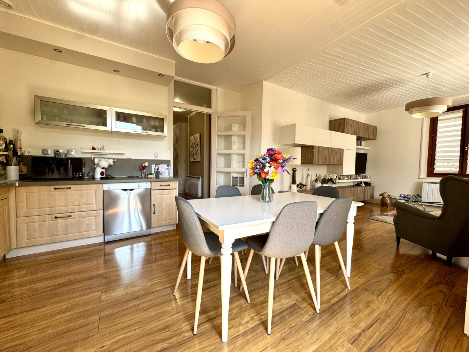 Installé au premier et dernier étage d’une maison divisée en seulement 4 appartements, ce bien offre un cadre de vie agréable et intimiste.